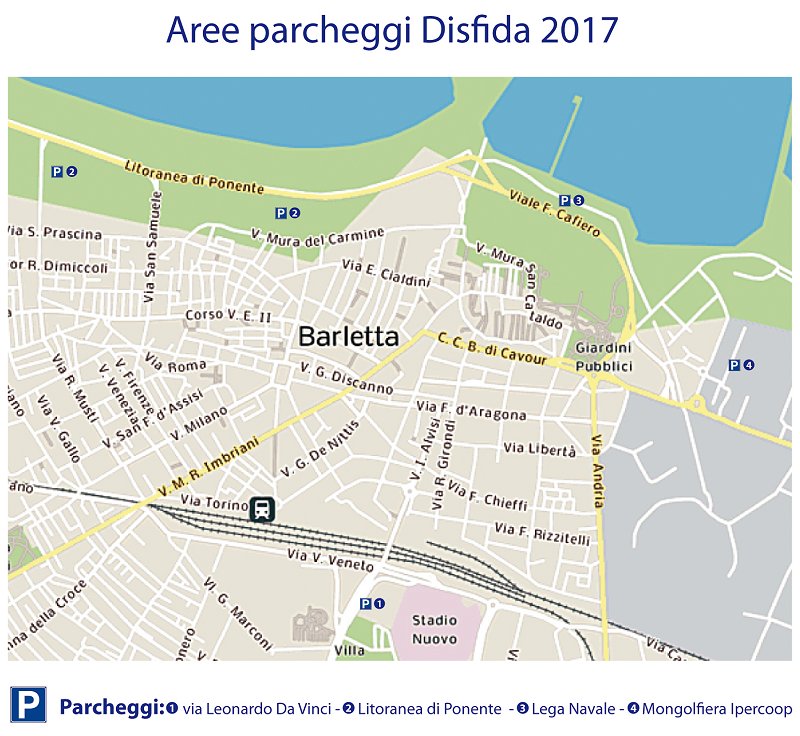 Barletta 6 settembre 2017 - In occasione delle iniziative collegate alla Disfida di Barletta, in programma sabato 9 e domenica 10 settembre, saranno disponibili parcheggi a pagamento sul lungomare Pietro Paolo Mennea, nei pressi della Lega Navale e in via Leonardo da Vinci. Sarà, invece, gratuito il parcheggio del centro commerciale Ipercoop/Mongolfiera (apertura fino alle ore 01,00).